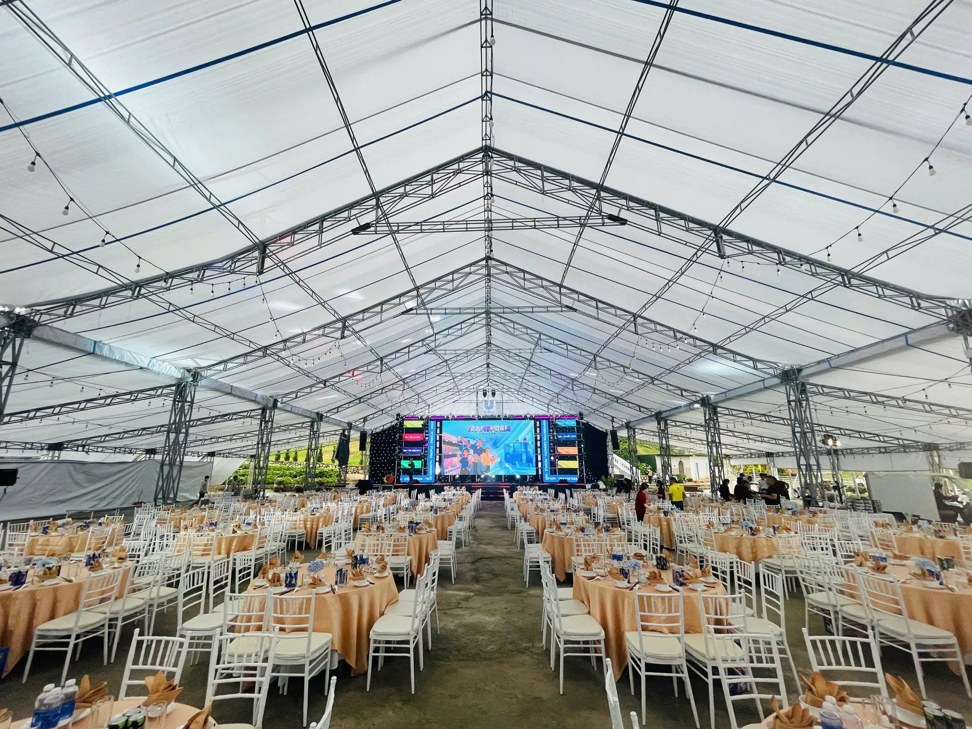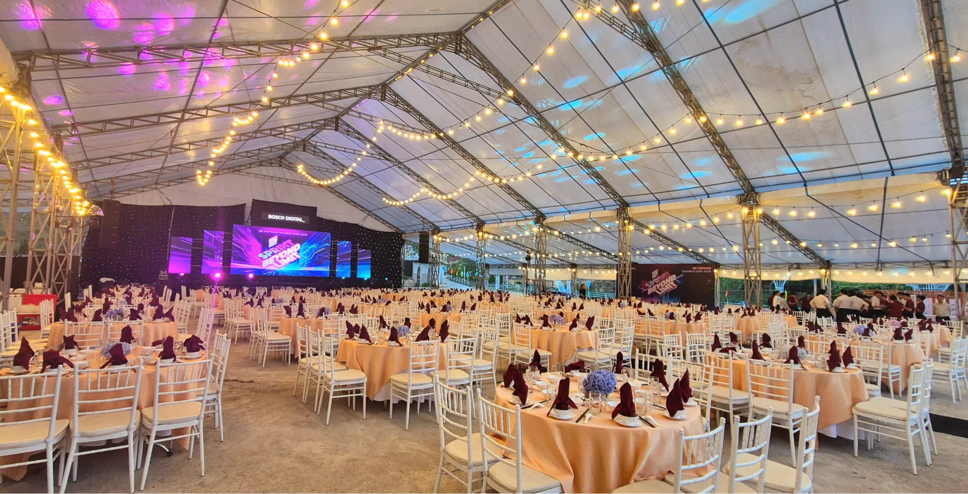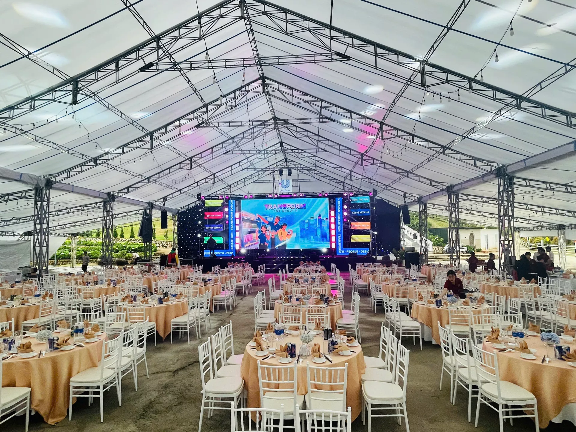 Không gian ngoài trời mở cho phép bố trí đa dạng các khu vực: khu vực dùng tiệc, khu vực giao lưu, sân khấu mini hoặc khu vực thư giãn. Ánh sáng, âm thanh và phong cách sắp đặt được tinh chỉnh để tạo nên bầu không khí sôi động nhưng không kém phần tinh tế, phù hợp cho các chương trình doanh nghiệp, nhóm khách đoàn hoặc sự kiện mang tính kết nối cộng đồng.