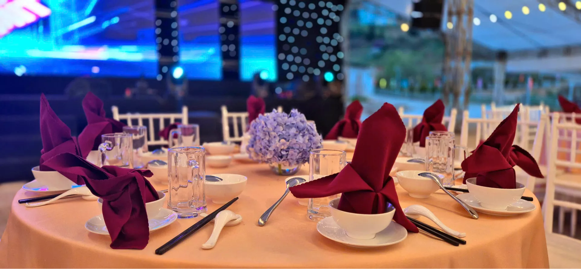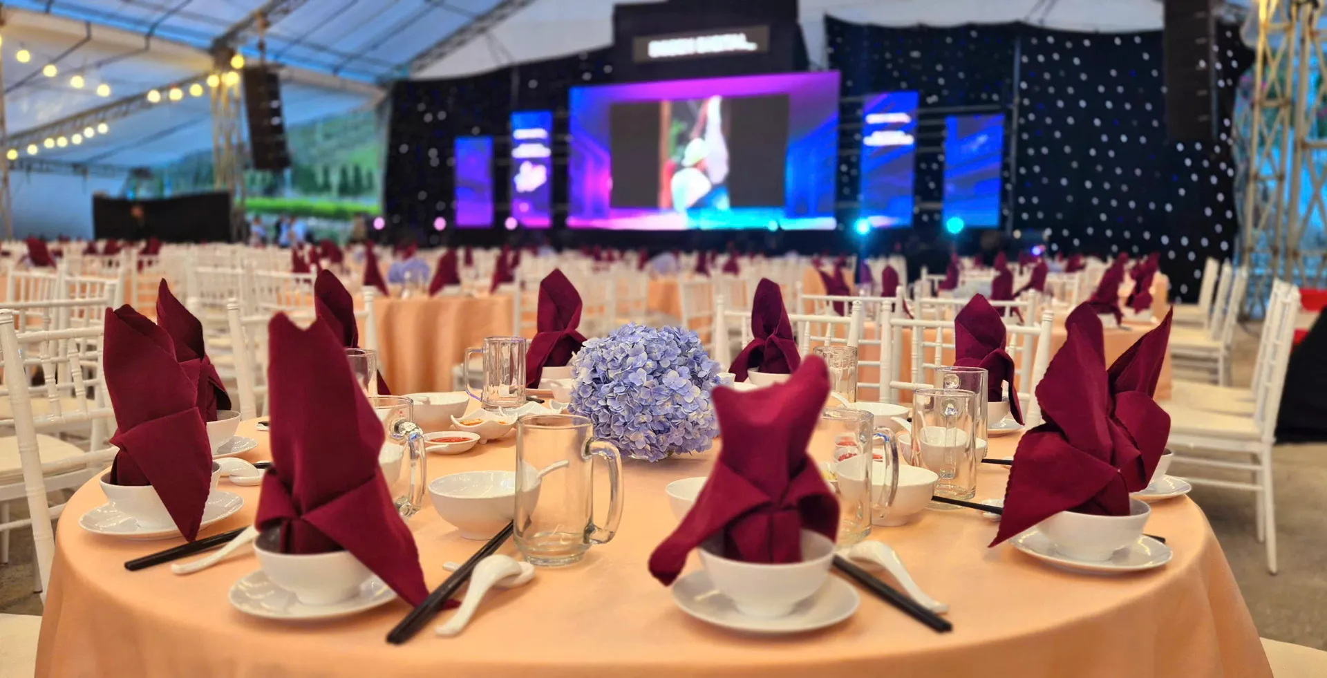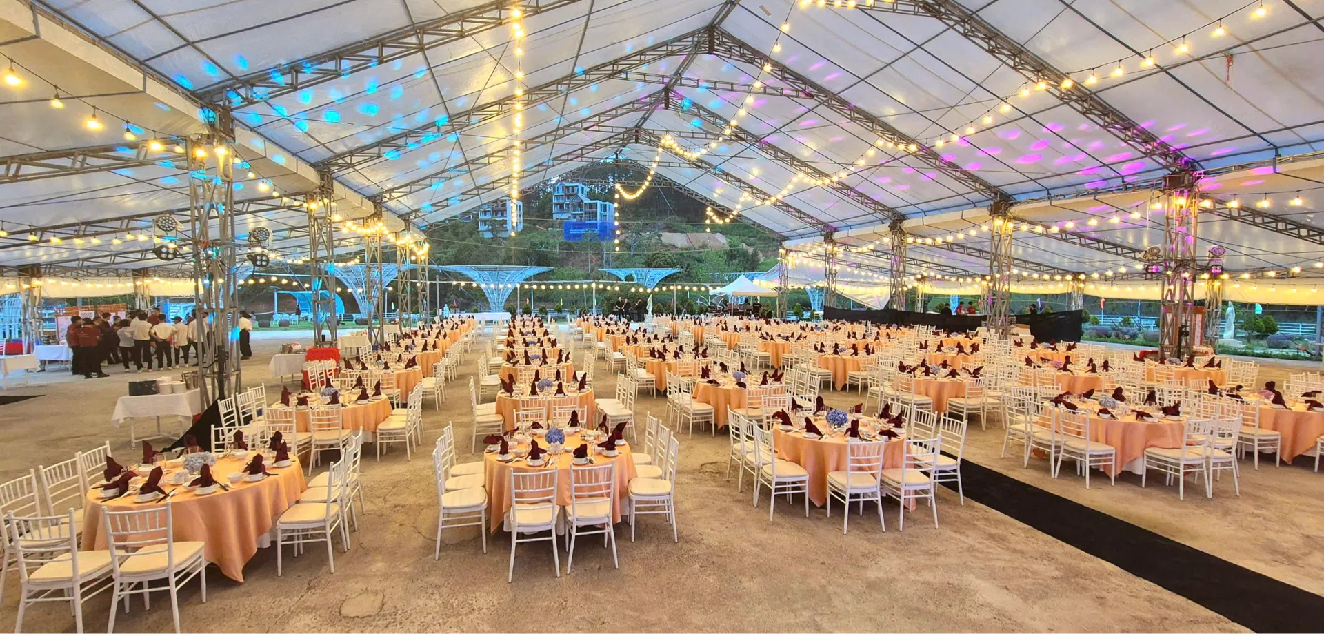 Không gian ngoài trời mở cho phép bố trí đa dạng các khu vực: khu vực dùng tiệc, khu vực giao lưu, sân khấu mini hoặc khu vực thư giãn. Ánh sáng, âm thanh và phong cách sắp đặt được tinh chỉnh để tạo nên bầu không khí sôi động nhưng không kém phần tinh tế, phù hợp cho các chương trình doanh nghiệp, nhóm khách đoàn hoặc sự kiện mang tính kết nối cộng đồng.