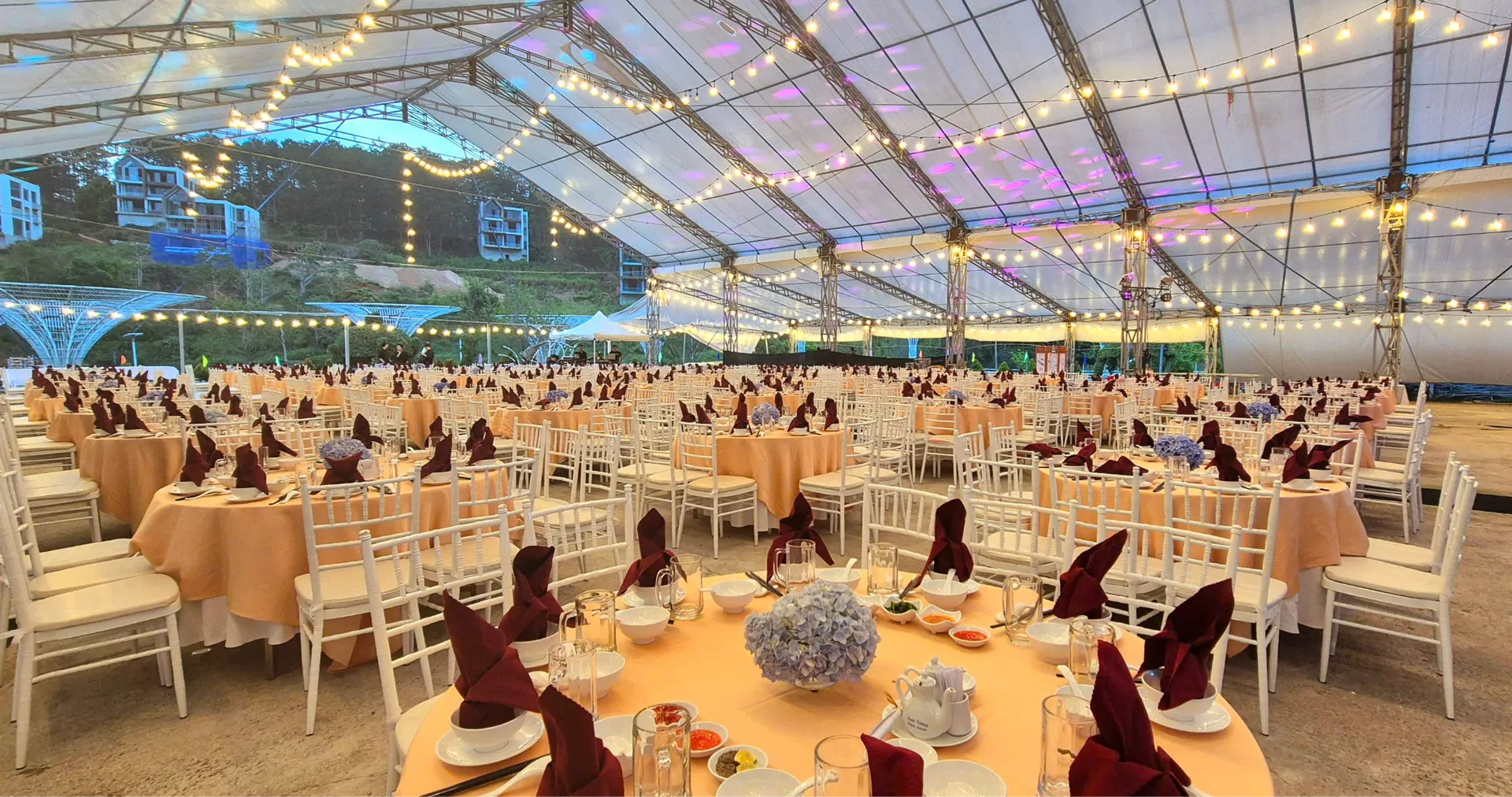 Sau những giờ vận động sôi nổi, Sân Team Building trở thành điểm hẹn hoàn hảo cho tiệc BBQ, tiệc đứng hoặc cocktail ngoài trời. Thực đơn được thiết kế linh hoạt, phù hợp với không khí năng động nhưng vẫn đảm bảo sự chỉn chu về hương vị và cách trình bày. Những bữa tiệc diễn ra giữa thiên nhiên xanh mát, trong làn gió cao nguyên dịu nhẹ, mang đến trải nghiệm ẩm thực thoải mái, gần gũi và đầy năng lượng.