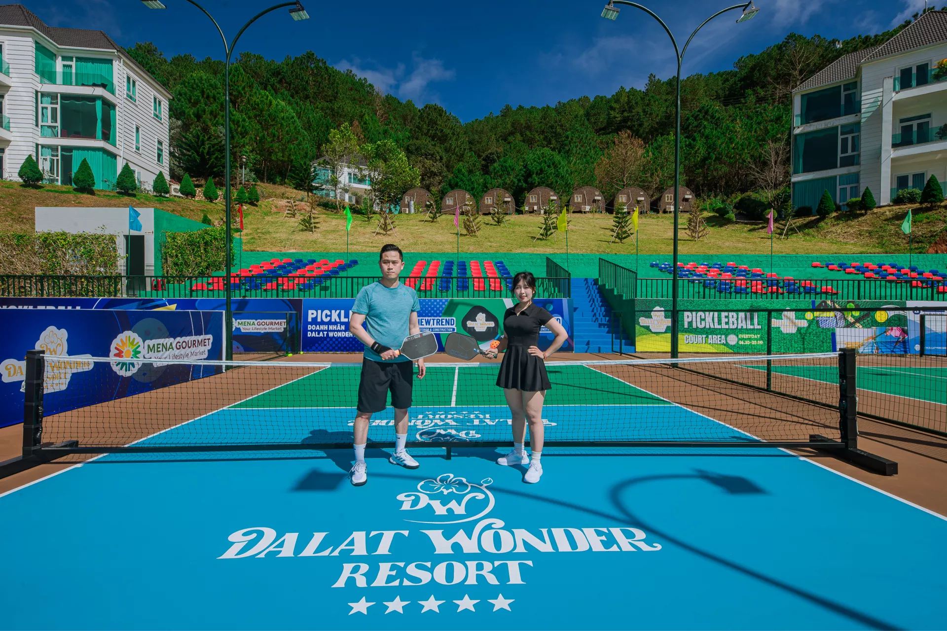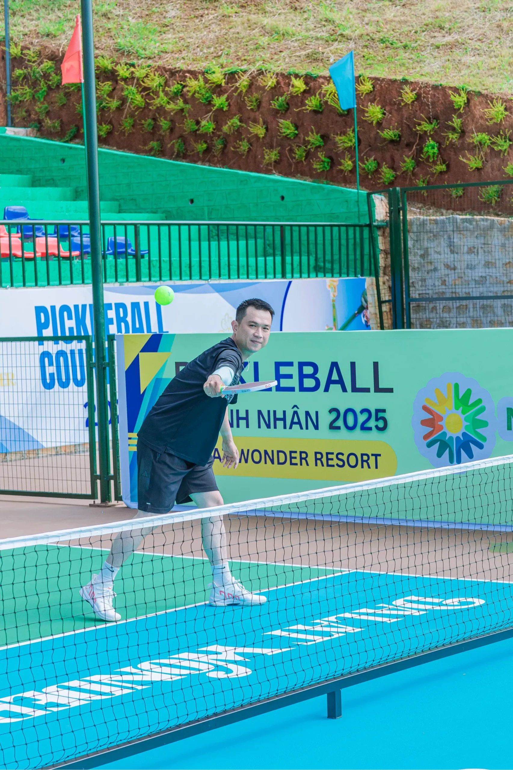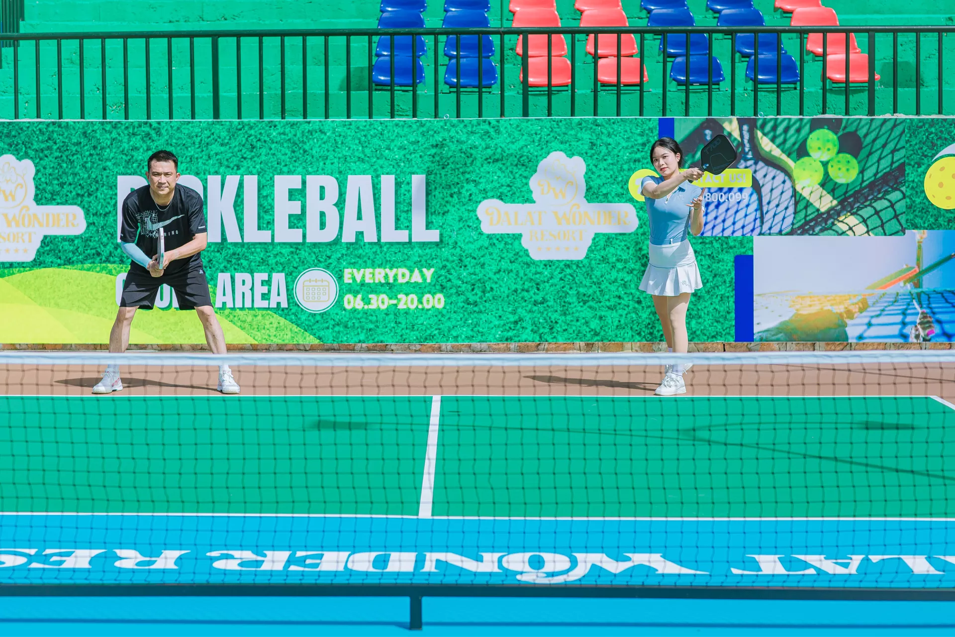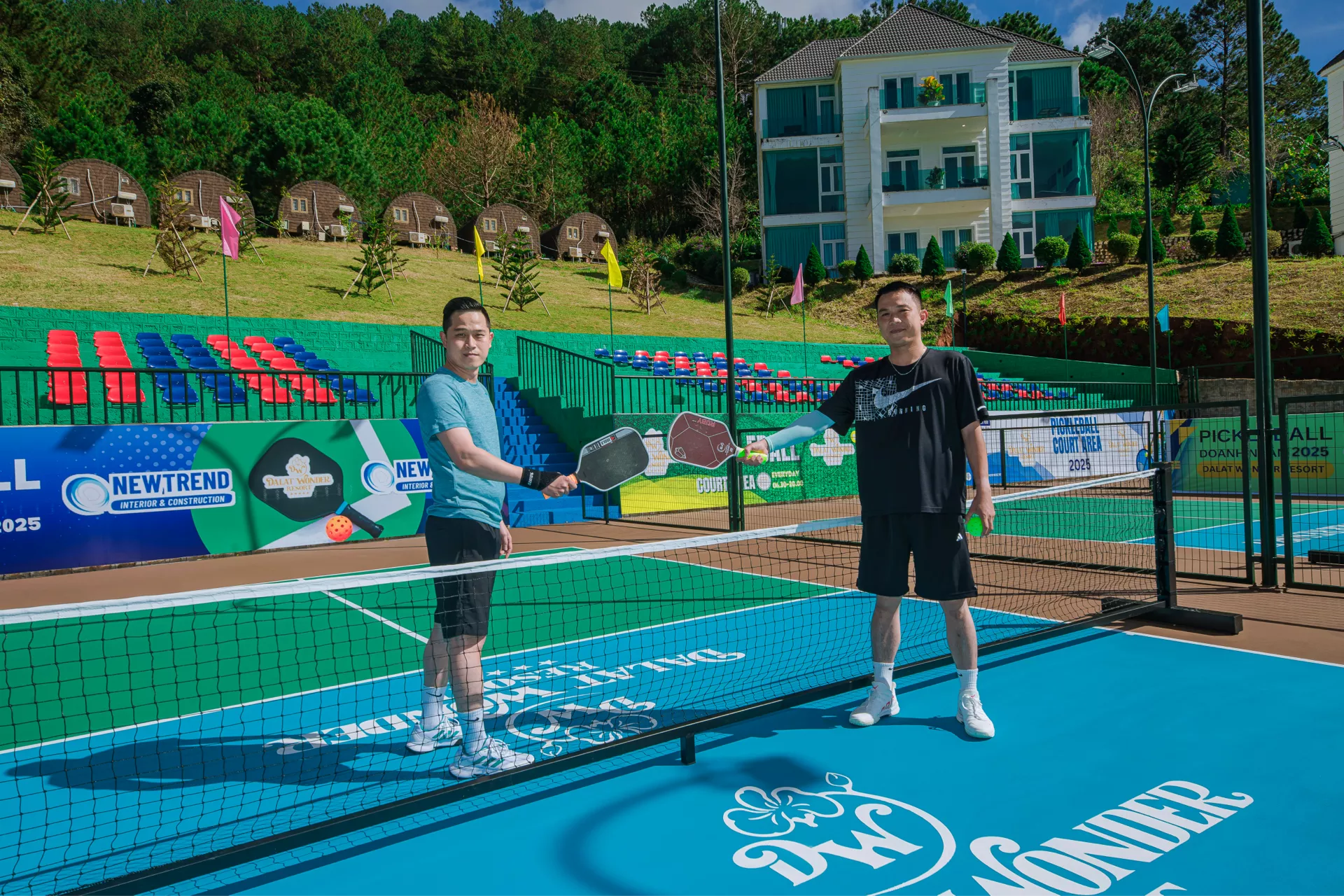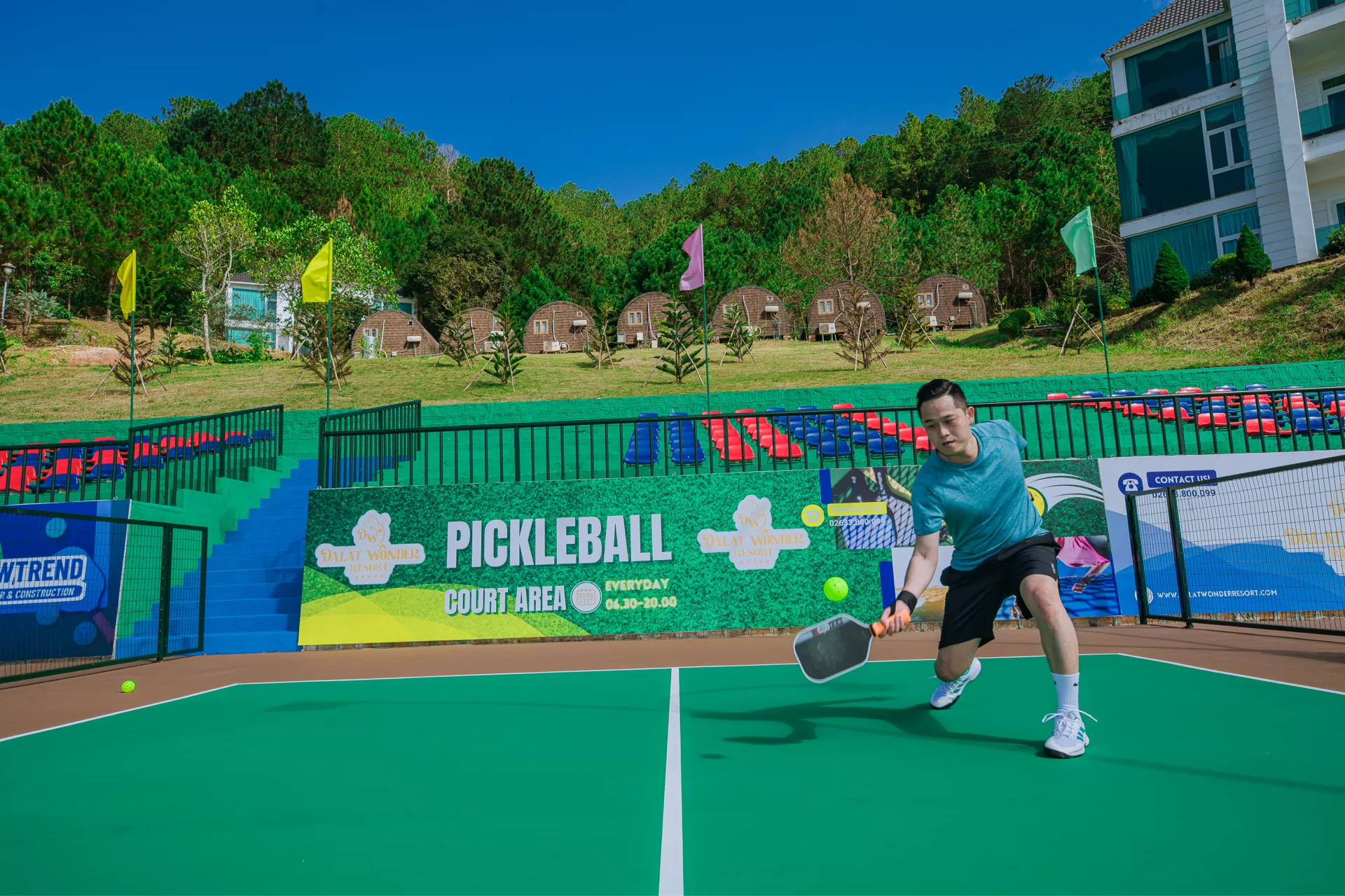 Pickleball – môn thể thao đang “làm mưa làm gió” trên thế giới – nay đã có mặt tại Đà Lạt Wonder Resort. Sự kết hợp độc đáo giữa tennis, cầu lông và bóng bàn mang đến một trải nghiệm vận động thú vị, dễ tiếp cận và phù hợp với mọi lứa tuổi. Chỉ cần một cây vợt gọn nhẹ, quả bóng nhựa đặc trưng và tinh thần hứng khởi, bạn đã sẵn sàng cho những phút giây sôi động trên sân.